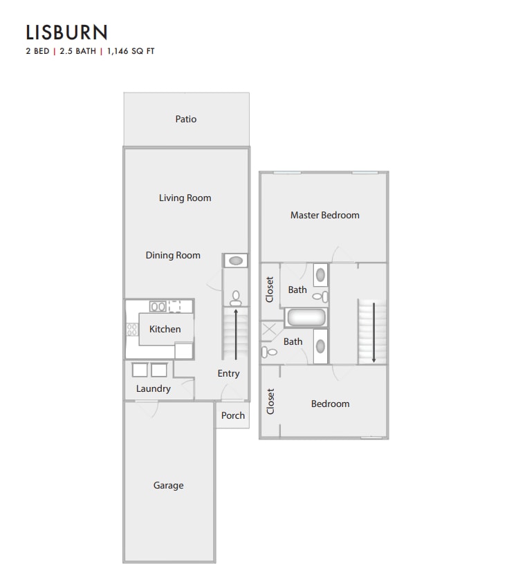 Modelo de apartamento: LisburnDesde $1,6952 Dormitorios, 2.5 Baños, 1146 sq ftDisponible Ahora![]()