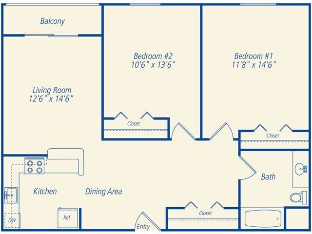 2 Dormitorios, 1 Baño, 894 pies²El más grandeEsta opción tiene las unidades más grandes para este modeloGalería del Modelo