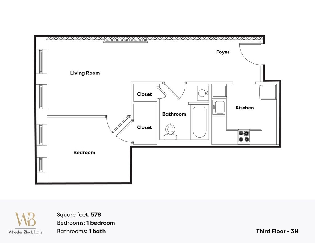 Unidad de apartamento: 3HModelo de apartamento: 1BR/1.0BA$1,6841 Dormitorio, 1 Baño, 578 sq ftDisponible Ahora![]()