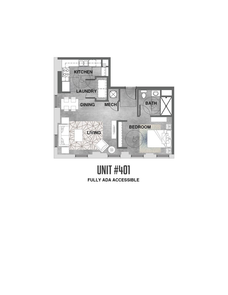 ADA - 1 Bedroom - 1 Bathroom - Plano 1 2 Dormitorios