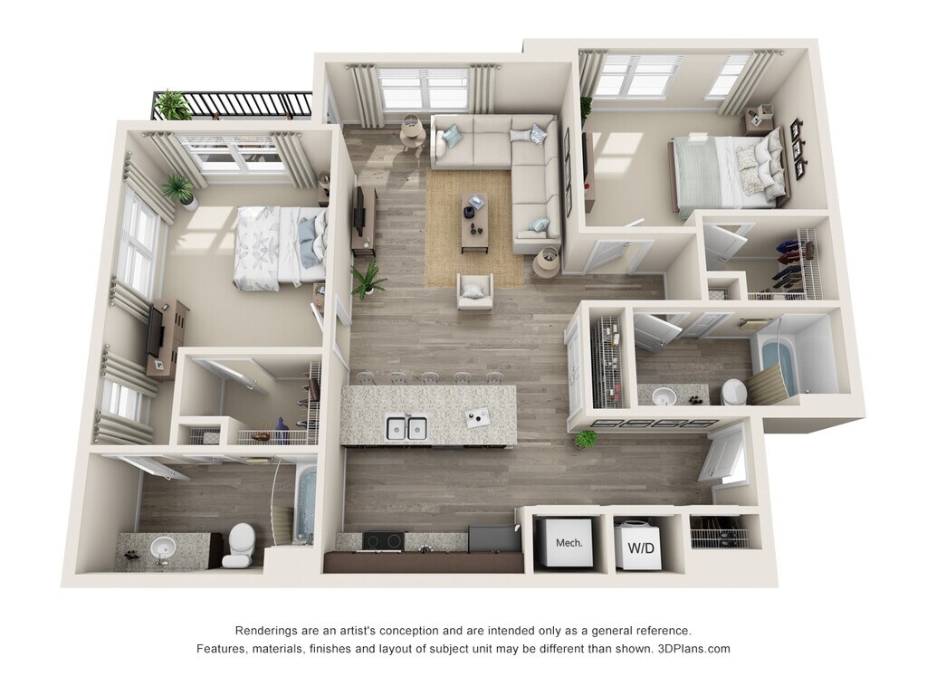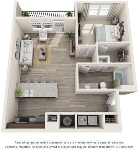 1 Dormitorio, 1 Baño, 723-766 pies²Disponible AhoraGalería del Modelo