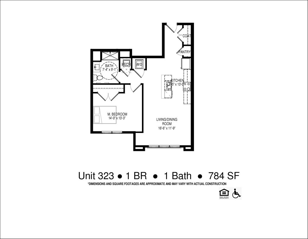 Unidad de apartamento: 323Modelo de apartamento: 1 Bed/ 1 Bath$2,6501 Dormitorio, 1 Baño, 784 sq ftDisponible April 23, 20262 Dormitorios