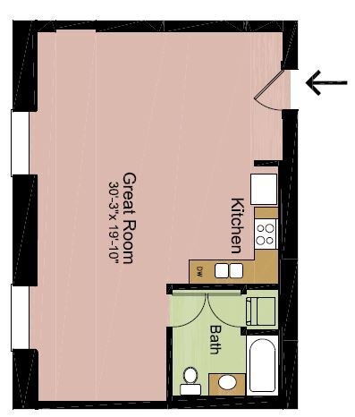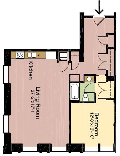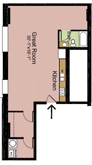 Estudio, 1 Baño, 895 pies²Disponible AhoraGalería del Modelo