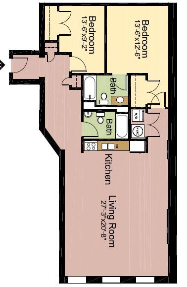 Modelo de apartamento: 2Bedroom 1BathroomLlame para Precios2 Dormitorios, 1 Baño, 1230 sq ftNo Disponible![]()