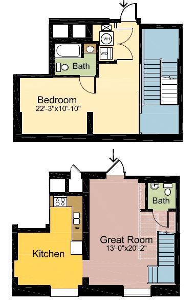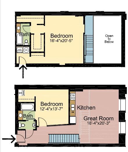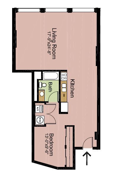 1 Dormitorio, 1 Baño, 800-890 pies²Disponible AhoraGalería del Modelo