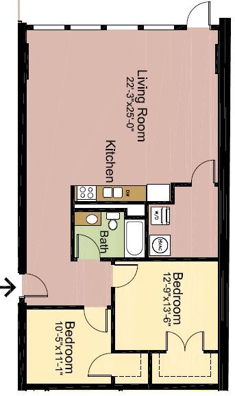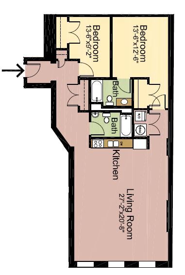 Modelo de apartamento: 1Bedroom 2BathLlame para Precios1 Dormitorio, 2 Baños, 1115 sq ftNo Disponible![]()