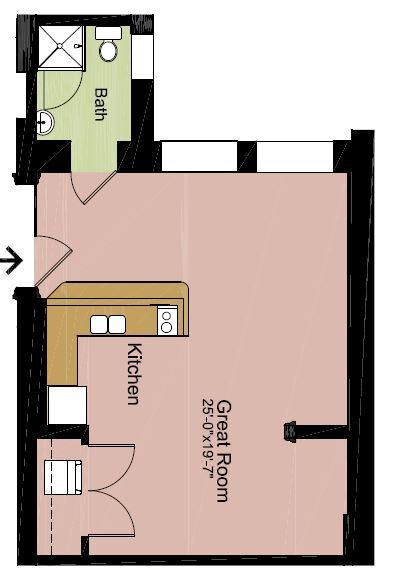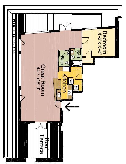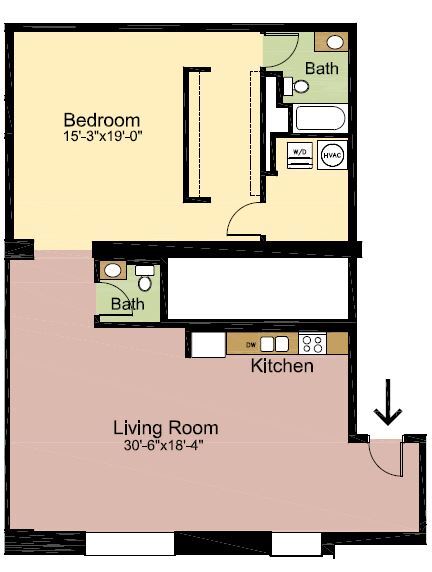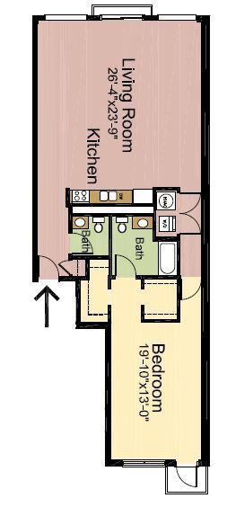 1 Bedroom 1 Bathroom - Plano 2 ![]()