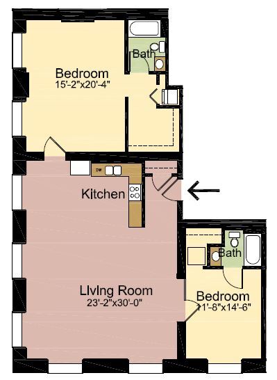 1Bedroom 2Bath - Plano 3 2 Dormitorios