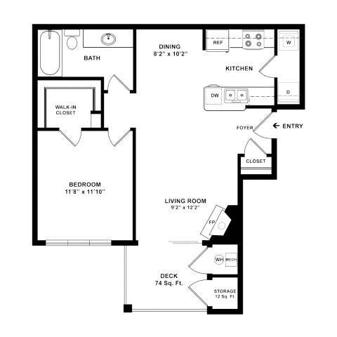 1 Dormitorio, 1 Baño, 727 pies²Disponible AhoraGalería del Modelo