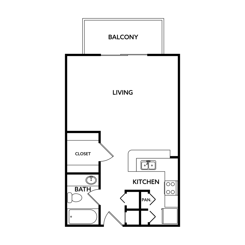1 Dormitorio, 1 Baño, 500 pies²Disponible AhoraGalería del Modelo
