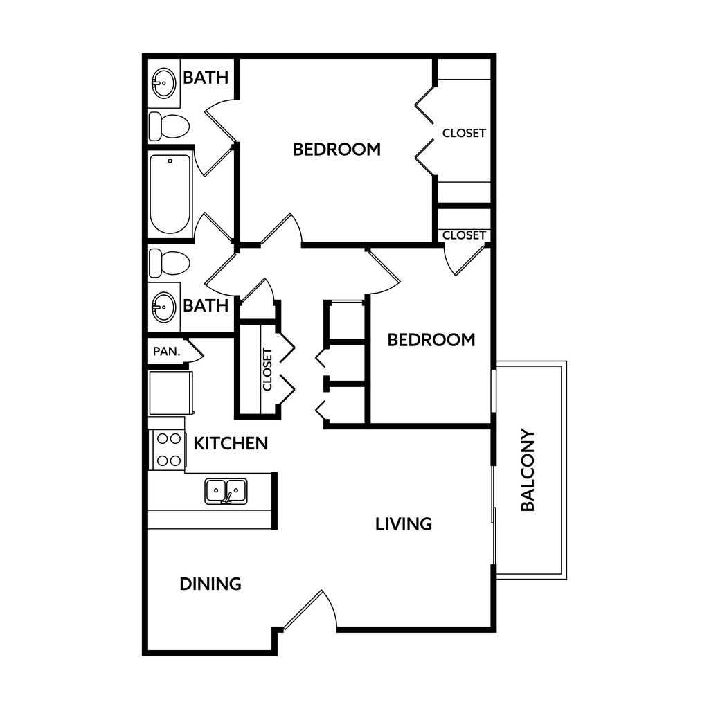 2 Dormitorios, 2 Baños, 900 pies²Disponible AhoraGalería del Modelo