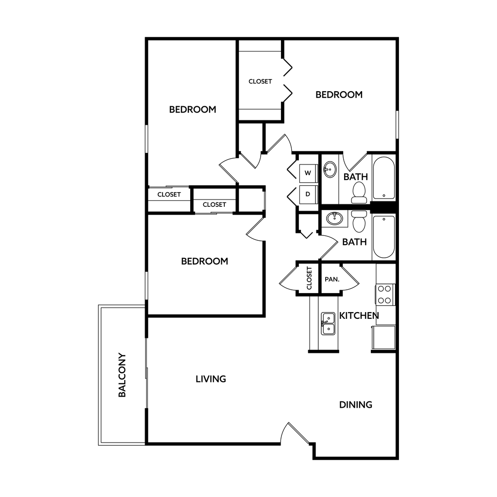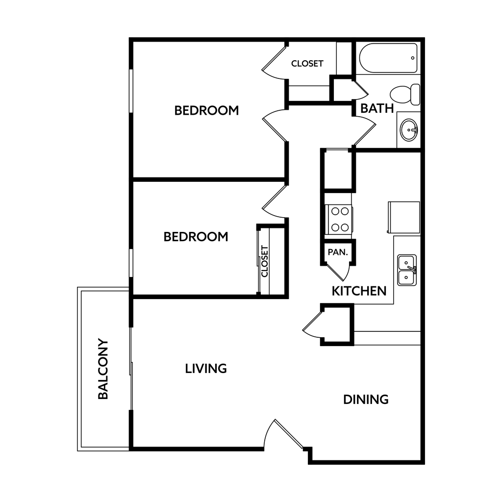 Modelo de apartamento: Laurel OakDesde $1,1802 Dormitorios, 1 Baño, 800 sq ftDisponible Ahora![]()
