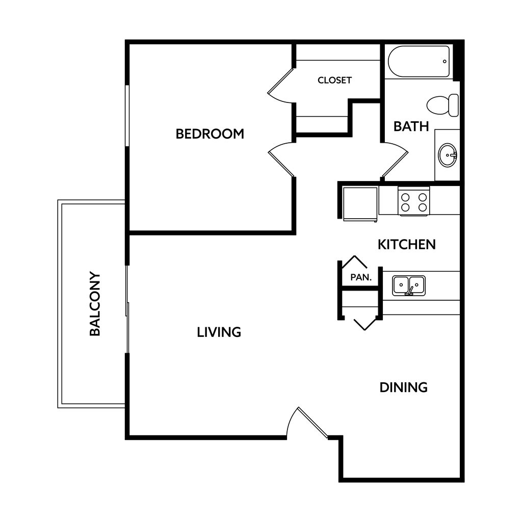 Modelo de apartamento: Black OakDesde $9871 Dormitorio, 1 Baño, 500 sq ftDisponible Ahora![]()