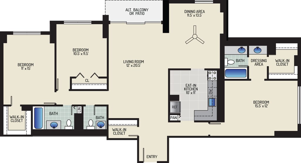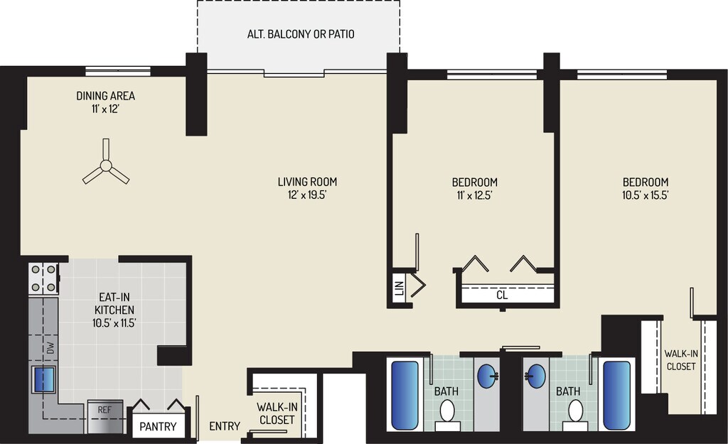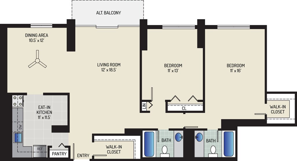 1 Bedroom + 1 Bath - Plano 11 ![]()