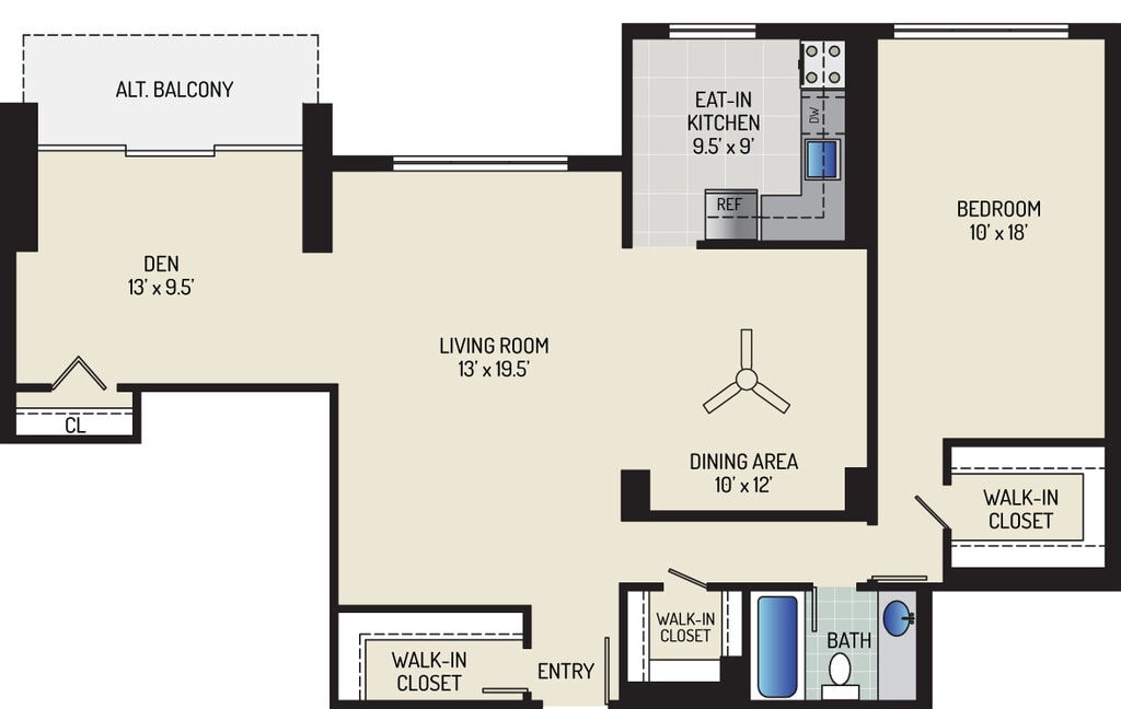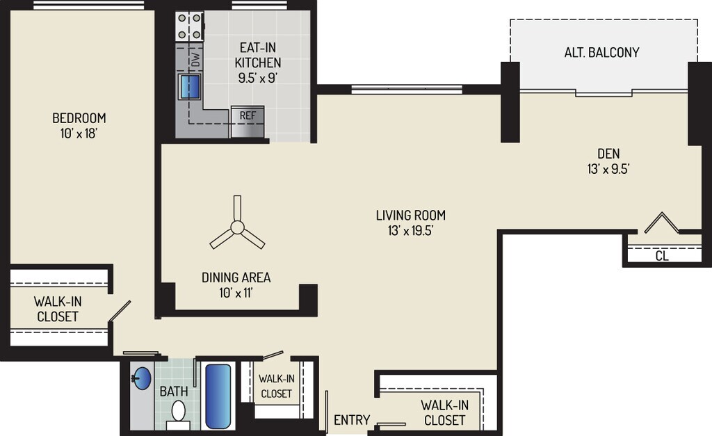 1 Bedroom + 1 Bath - Plano 13 ![]()
