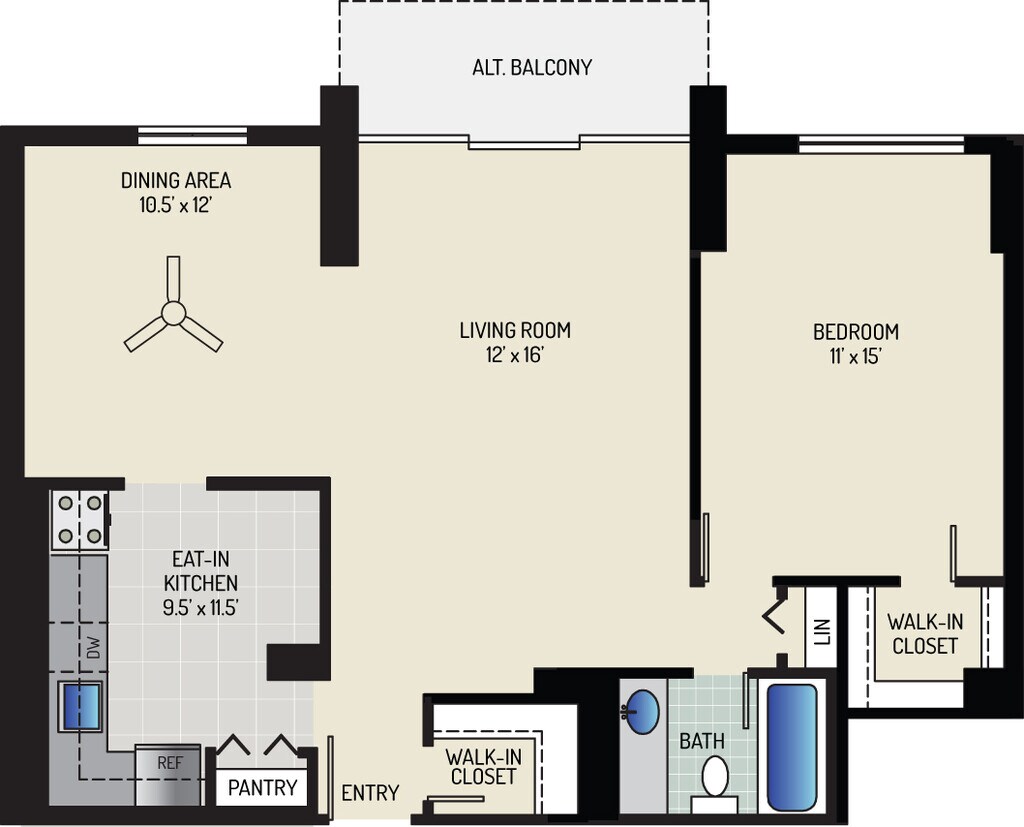 1 Bedroom + 1 Bath - Plano 12 ![]()