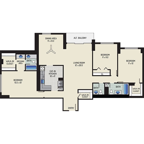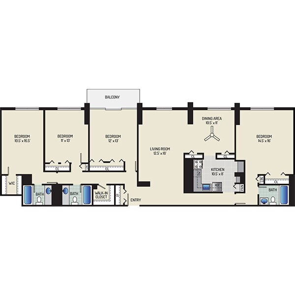 Modelo de apartamento: 1 Bedroom + 1 BathDesde $1,4231 Dormitorio, 1 Baño, 800-1055 sq ftDisponible AhoraPlanosFotos![]()