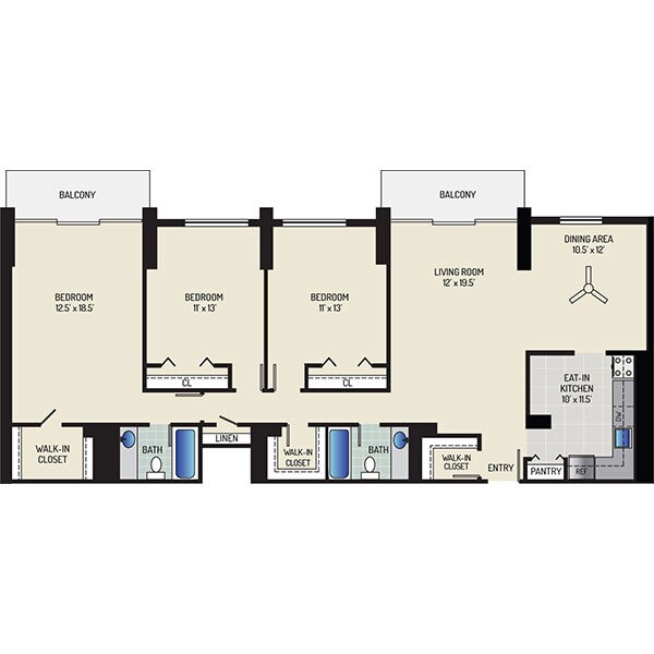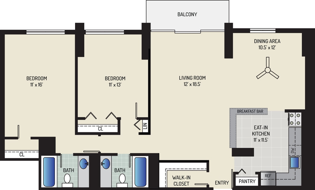 Modelo de apartamento: 2 Bedrooms + 2 BathsDesde $1,8242 Dormitorios, 2 Baños, 1080-1350 sq ftDisponible AhoraPlanosFotos![]()
