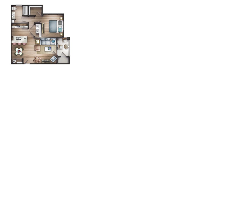 1 Dormitorio, 1 Baño, 735 pies²Galería del Modelo