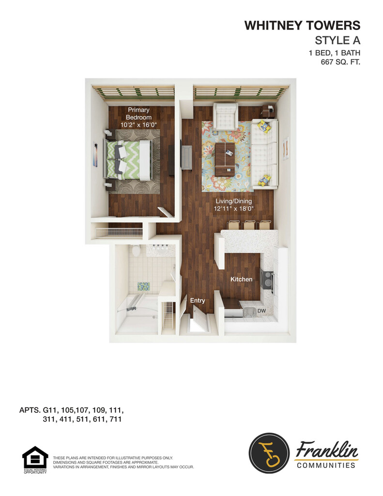 1 Dormitorio, 1 Baño, 667-860 pies²Más CargosDisponible AhoraDetalles de Diponibilidad