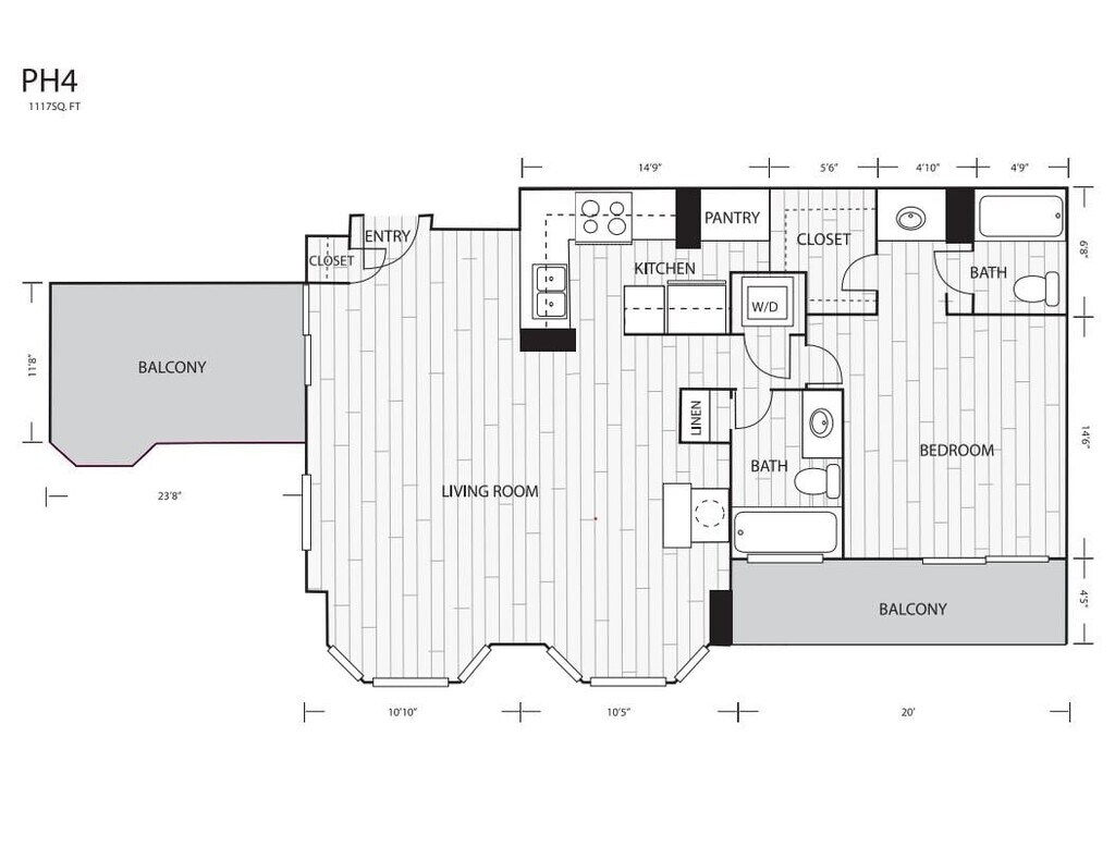 1 Dormitorio, 1 Baño, 620 pies²Disponible AhoraGalería del Modelo