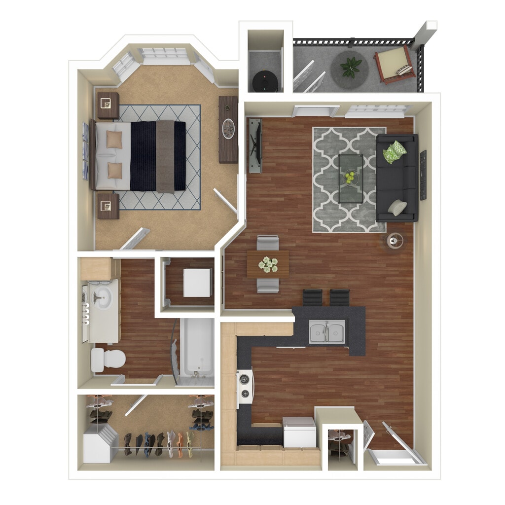 1 Dormitorio, 1 Baño, 666 pies²Disponible AhoraGalería del Modelo
