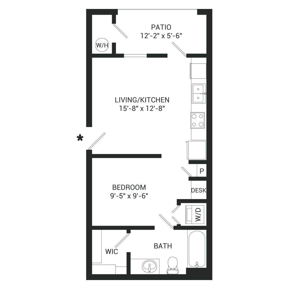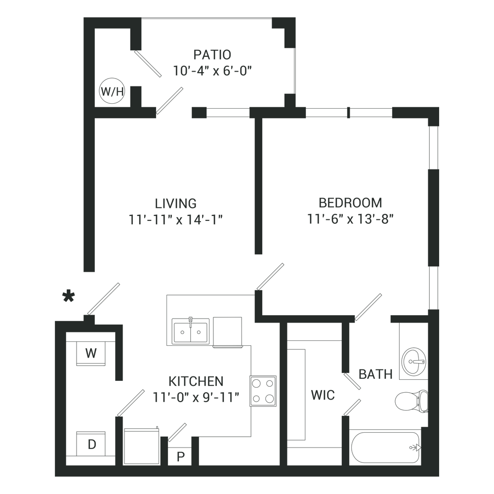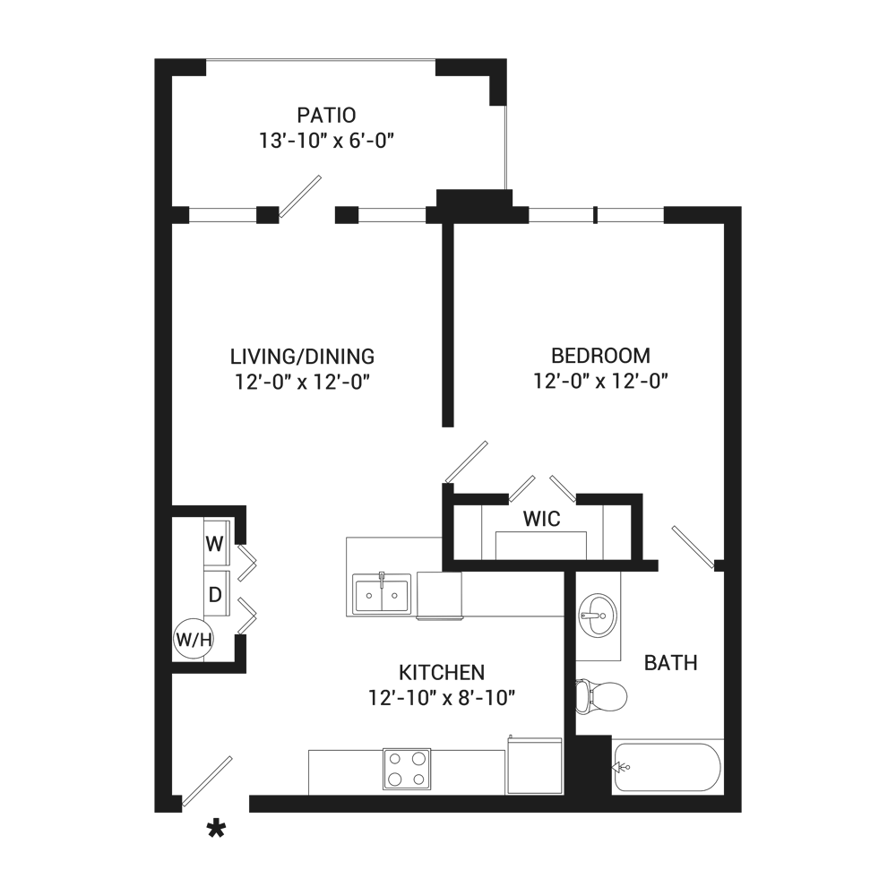 1 Dormitorio, 1 Baño, 892 pies²Disponible AhoraEl más grandeEsta opción tiene las unidades más grandes para este modeloGalería del Modelo