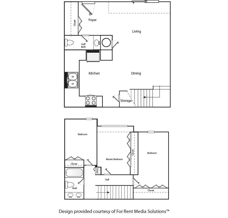 Modelo de apartamento: 2 Bed Townhouse 1 and 1.5 bath$1,0102 Dormitorios, 1.5 Baños, 1000 sq ftNo Disponible![]()