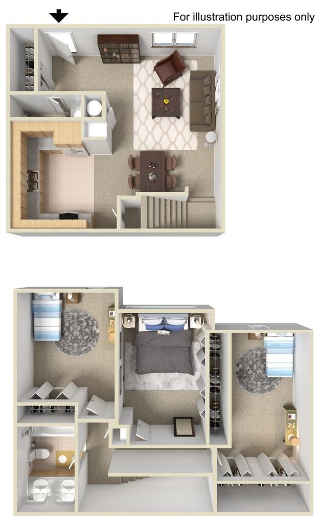 Modelo de apartamento: 3 Bed Townhouse 1 and 1.5 Bath$1,1903 Dormitorios, 1.5 Baños, 1250 sq ftDisponible December 15, 2025![]()