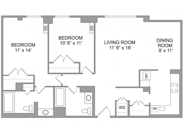 Modelo de apartamento: 2x2 ModernizedDesde $2,5752 Dormitorios, 2 Baños, 960-1150 sq ftDisponible November 28, 2025![]()