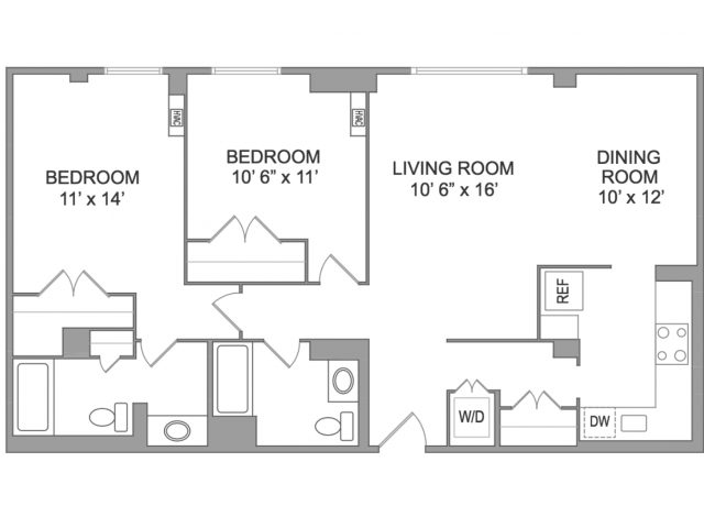 1 Dormitorio, 1 Baño, 700-800 pies²Disponible AhoraGalería del Modelo