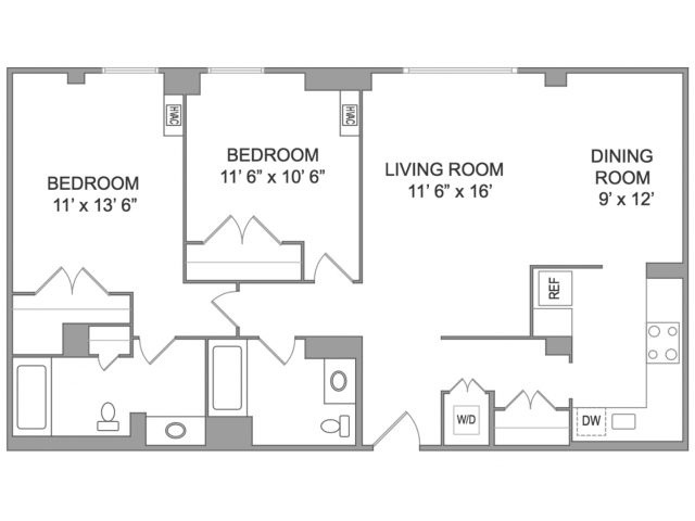 2x2 Modernized - Plano 1 Unidad de apartamento: 611Modelo de apartamento: 2x2 Modernized$2,4752 Dormitorios, 2 Baños, 960 sq ftDisponible Ahora![]()
