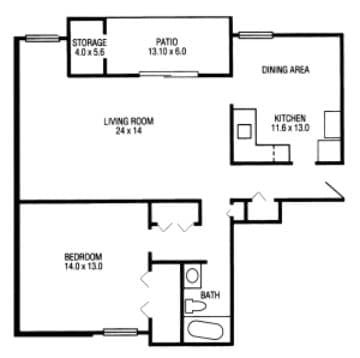 Modelo de apartamento: One Bedroom$1,2001 Dormitorio, 1 Baño, 900 sq ftDisponible AhoraPlanosFotos![]()