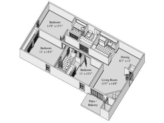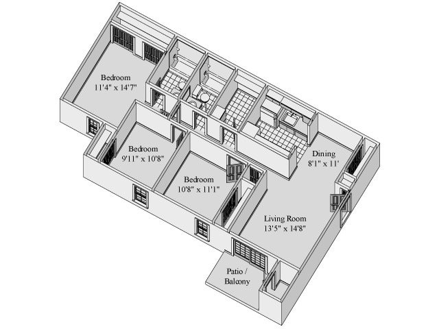Modelo de apartamento: The Magnolia3 Dormitorios, 2 Baños, 1220 sq ftNo Disponible![]()