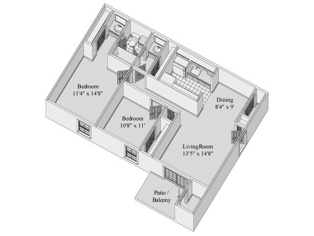 Modelo de apartamento: The Dogwood2 Dormitorios, 2 Baños, 1044 sq ftNo Disponible![]()