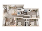 Modelo de apartamento: DeschutesDesde $1,8673 Dormitorios, 2 Baños, 1123 sq ftDisponible AhoraLos planos son representaciones artísticas. Todas las dimensiones son aproximadas. El producto y las especificaciones reales pueden variar en tamaño o detalle. No todas las características están disponibles en cada vivienda en alquiler. Por favor, consulta con un representante para obtener más detalles.