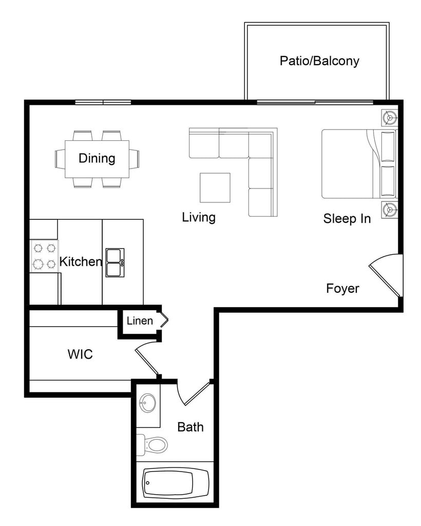 Modelo de apartamento: S1Desde $887Estudio, 1 Baño, 536 sq ftDisponible November 8, 2025PlanosFotos![]()