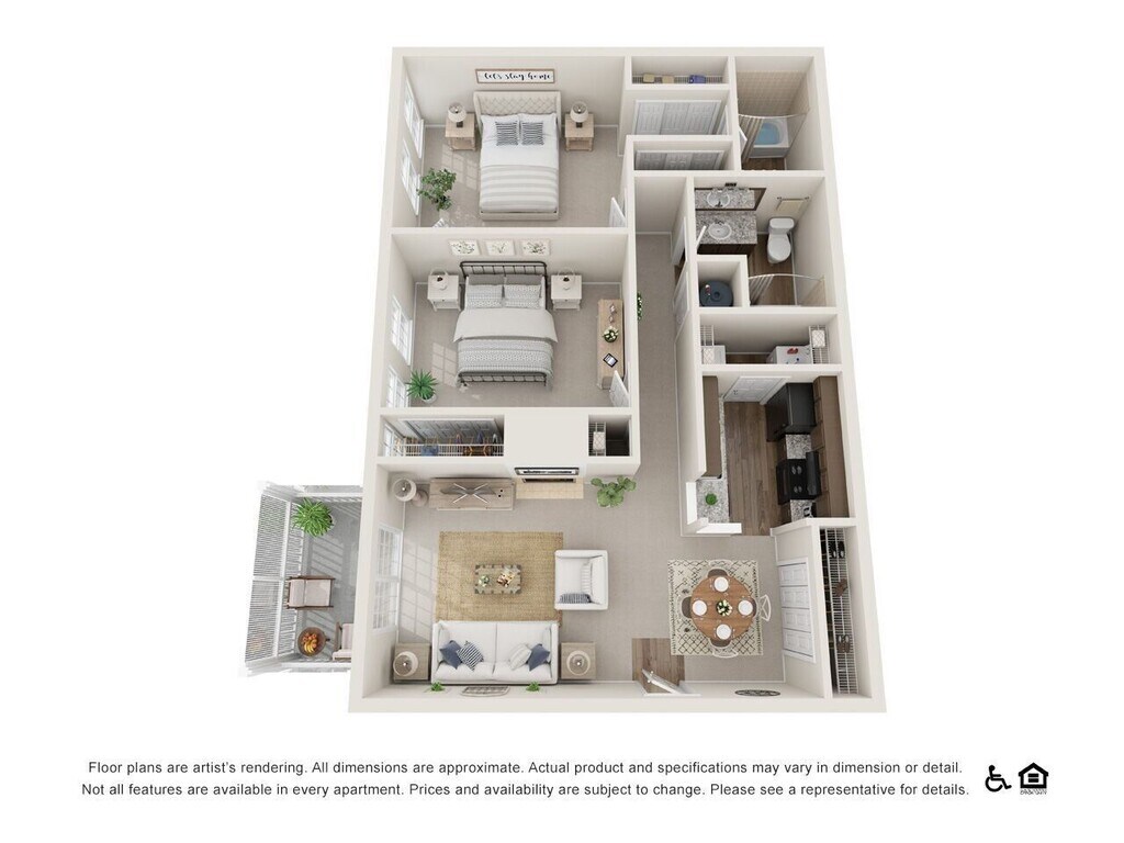 2 Dormitorios, 2 Baños, 1000 pies²Disponible AhoraGalería del Modelo