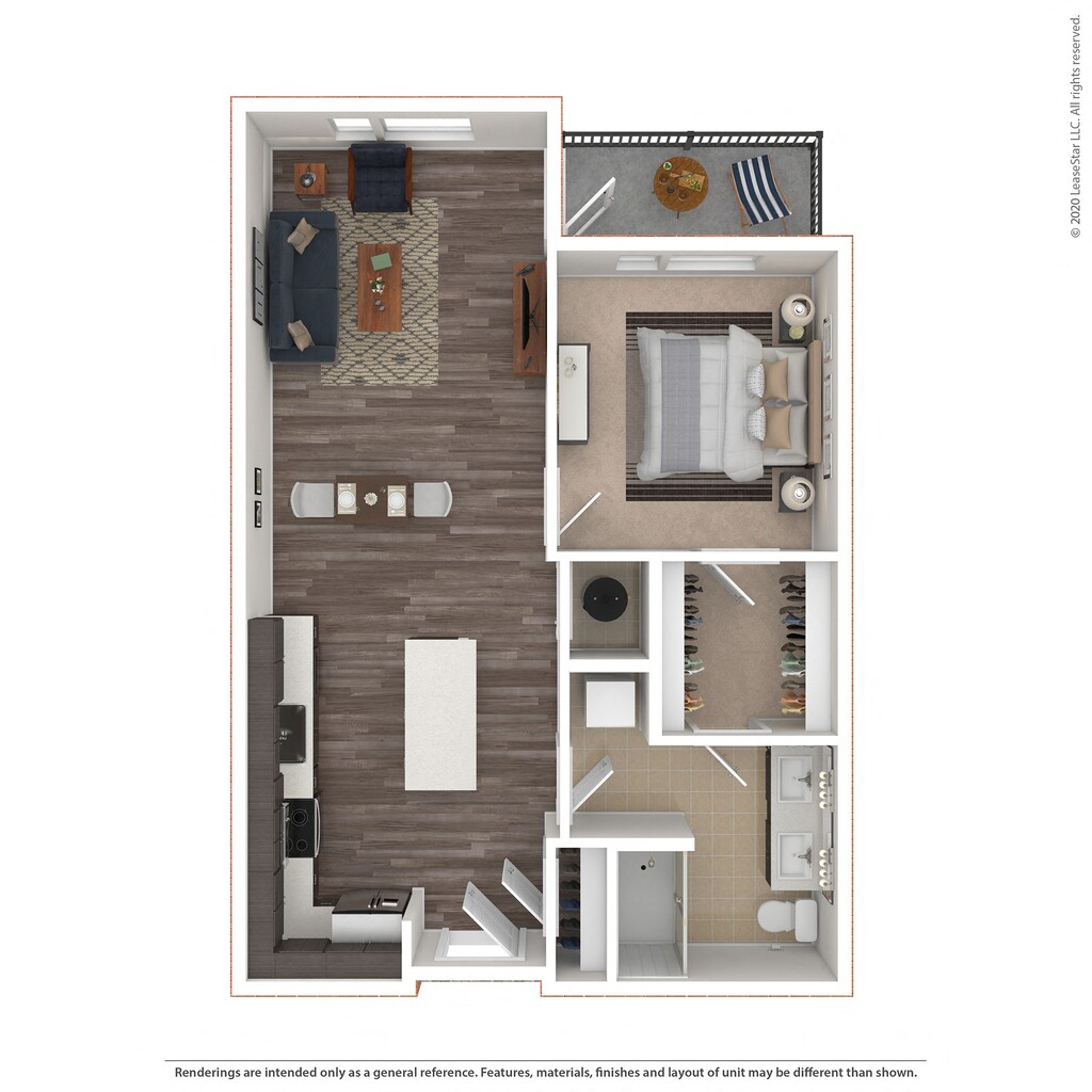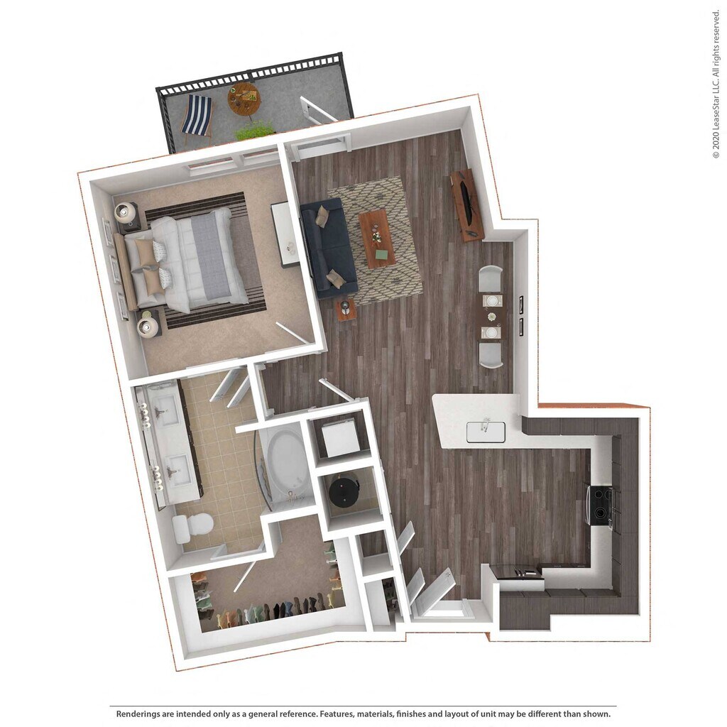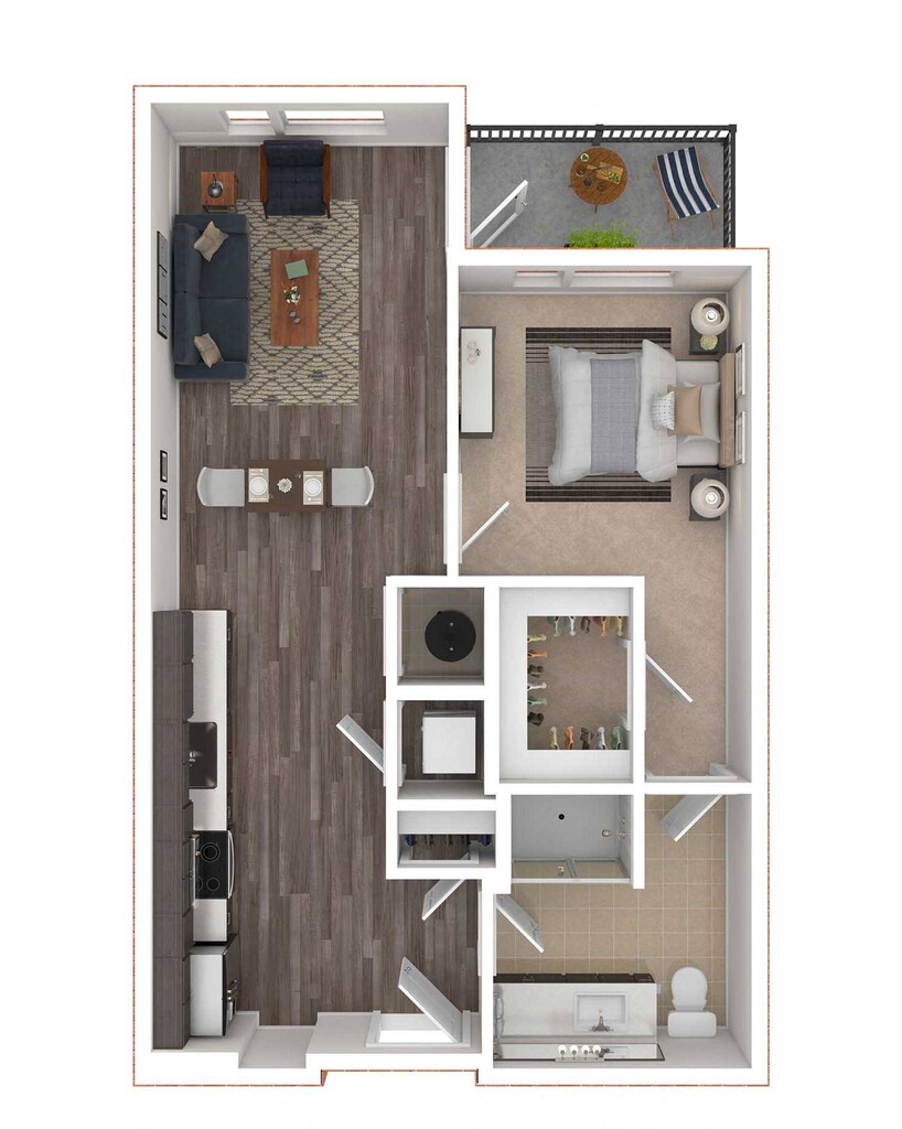 Modelo de apartamento: A61 Dormitorio, 1 Baño, 795 sq ftDisponible Ahora![]()