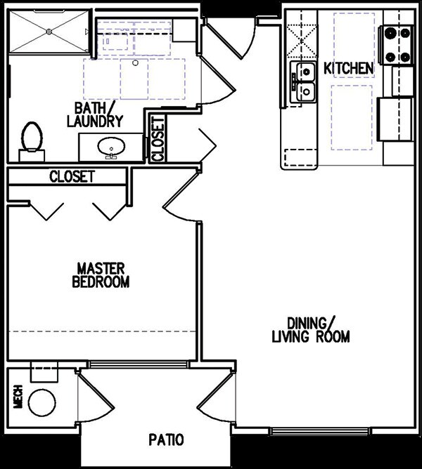 Modelo de apartamento: 1BR1 Dormitorio, 1 Baño, 654 sq ftDisponible Ahora![]()