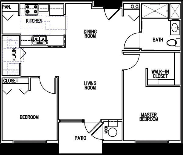 2BR - Plano 1 Unidad de apartamento: 35Modelo de apartamento: 2BR2 Dormitorios, 1 Baño, 871 sq ftDisponible Ahora