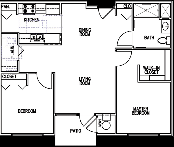 2 Dormitorios, 1 Baño, 871 pies²Disponible AhoraGalería del Modelo