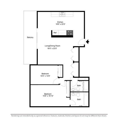 2 Dormitorios, 2 Baños, 1000 pies²Disponible Apr 25Galería del Modelo