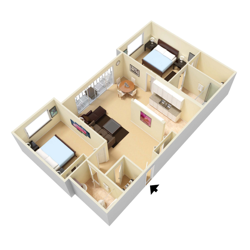 Modelo de apartamento: 2 Bed 2 Bath Flat - Back$1,0542 Dormitorios, 2 Baños, 1000 sq ftDisponible April 25, 2026![]()
