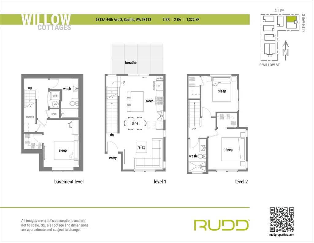 Willow Cottages se encuentra en el Barrio Brighton y el código postal 98118 de Seattle, WA. Esta comunidad está gestionada profesionalmente por Rudd Development Company Inc