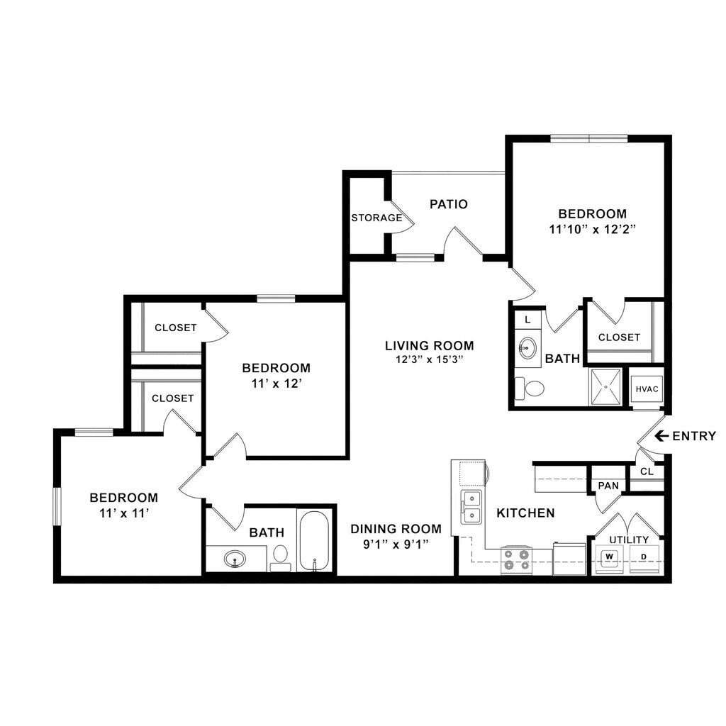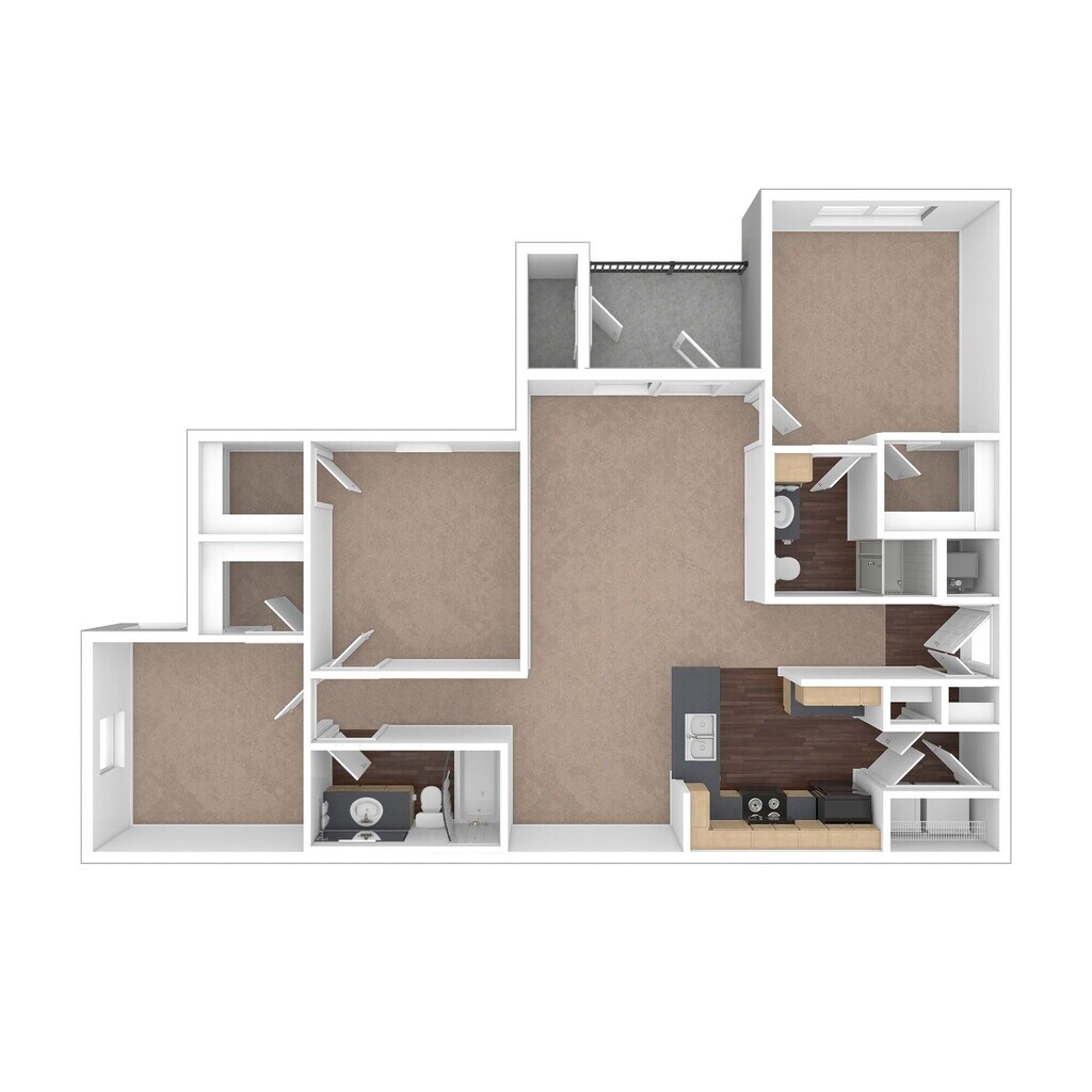 3 Dormitorios, 2 Baños, 1200 pies²Disponible Dec 4Galería del Modelo