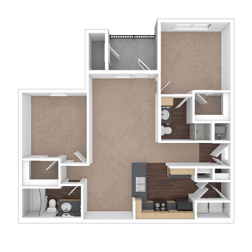 Modelo de apartamento: The Ozark - 2x2Desde $1,0782 Dormitorios, 2 Baños, 983 sq ftDisponible December 24, 2025![]()
