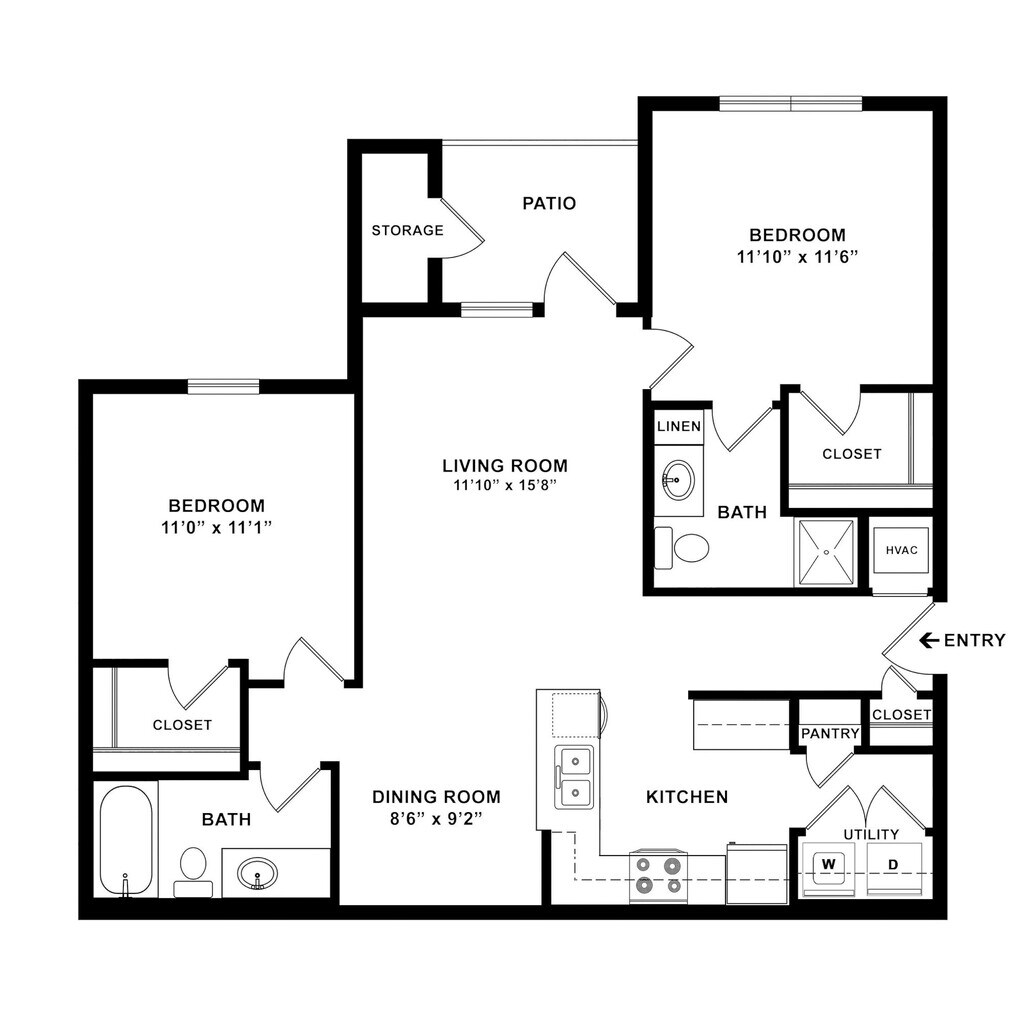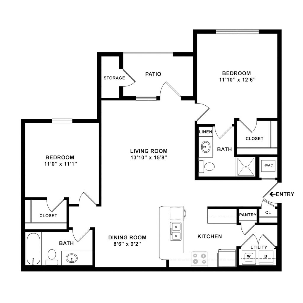 Modelo de apartamento: The Hamilton - 2x2 LargeDesde $1,0502 Dormitorios, 2 Baños, 1050 sq ftDisponible Ahora![]()