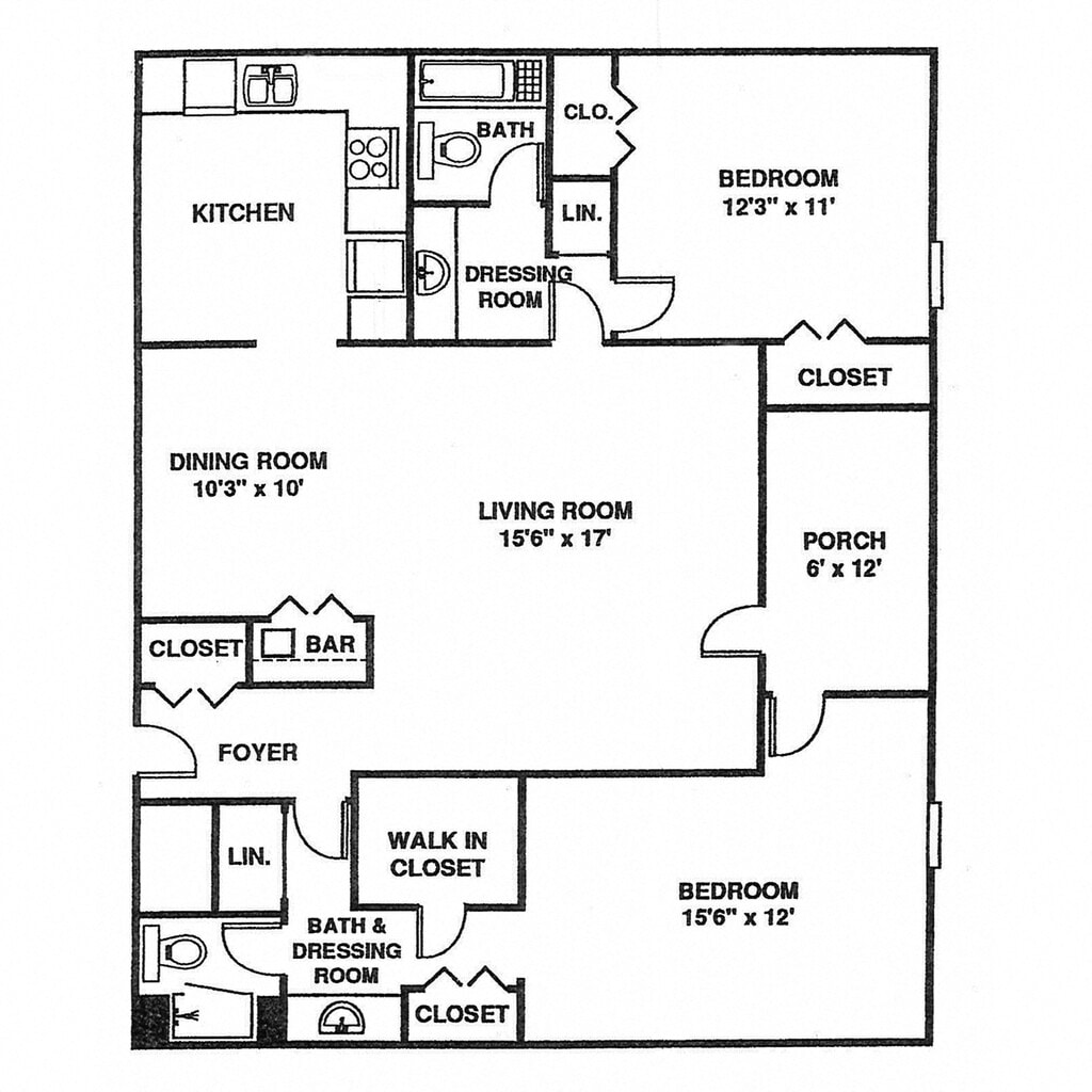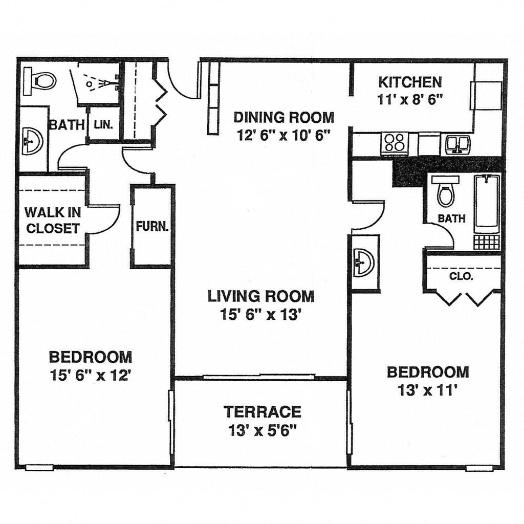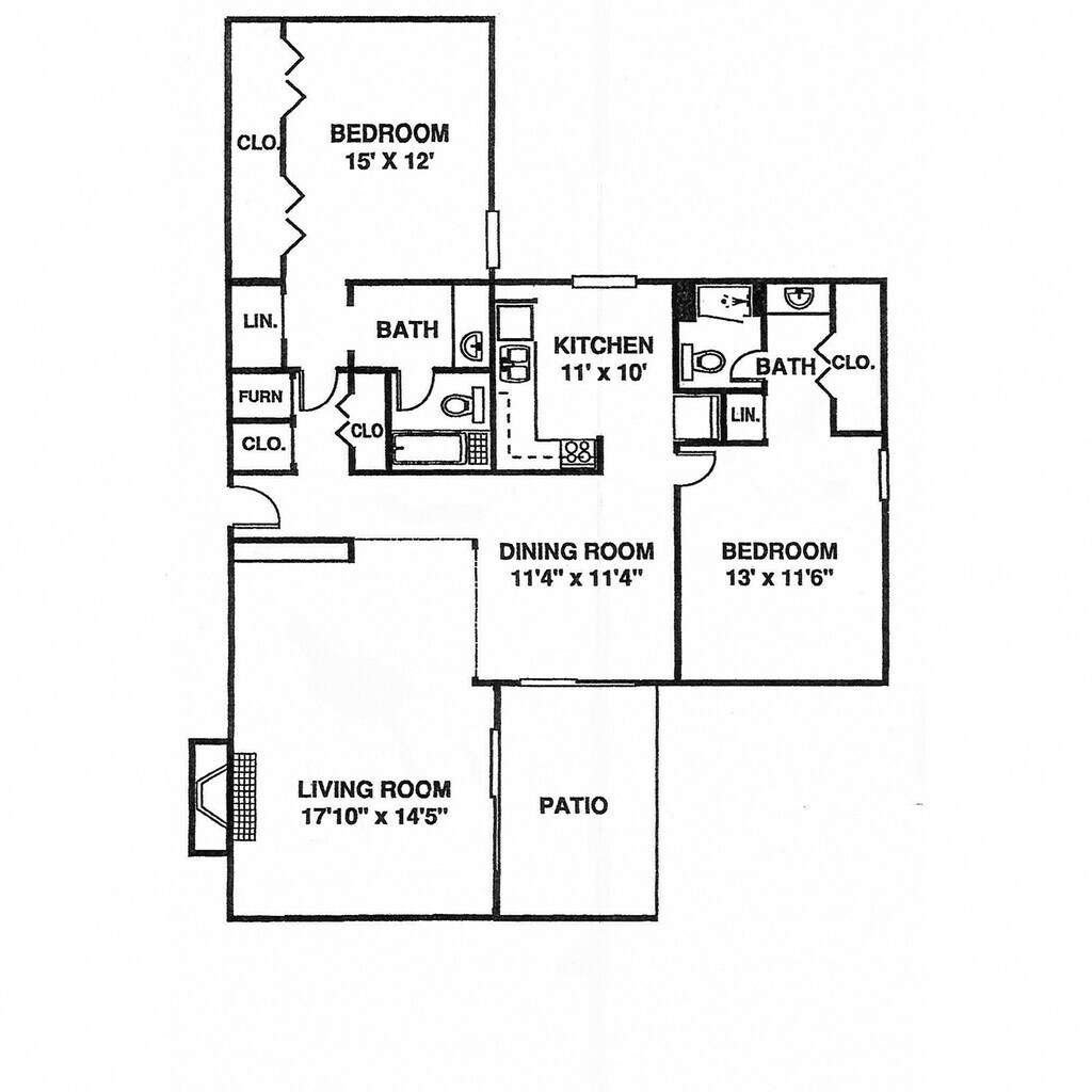 Modelo de apartamento: South A2Desde $9251 Dormitorio, 1 Baño, 710 sq ftDisponible Ahora![]()
