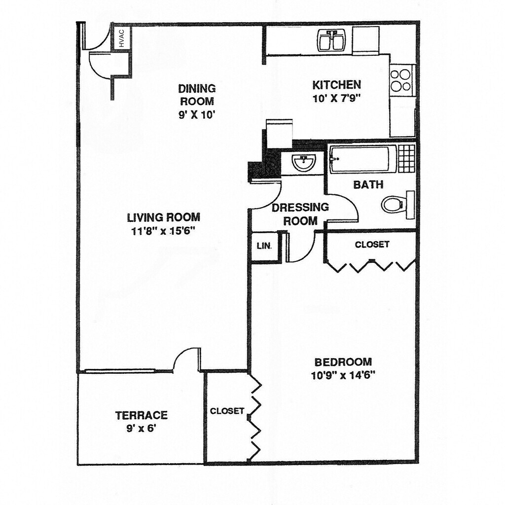 Modelo de apartamento: West Mid A1Desde $9301 Dormitorio, 1 Baño, 800 sq ftDisponible Ahora![]()